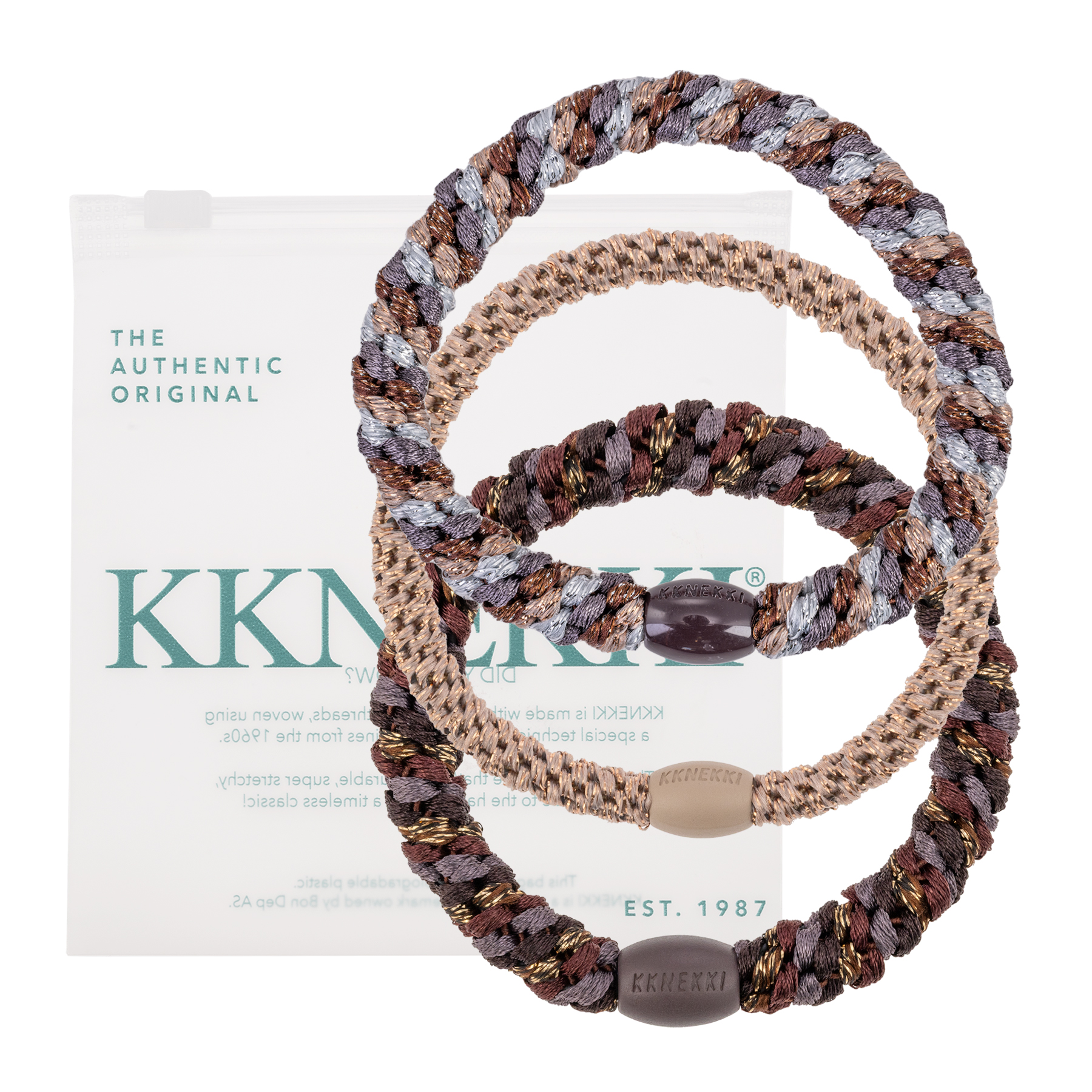 Pack nº2 formado por 3 coleteros /pulseras. Tejidos con más de 60 hilos para que mantengan su elasticidad y sean suaves con cualquier tipo de cabello. Conocidas por su durabilidad, calidad y diseño, están pensadas para lucirlas en tu muñeca mientras no las estés usando.