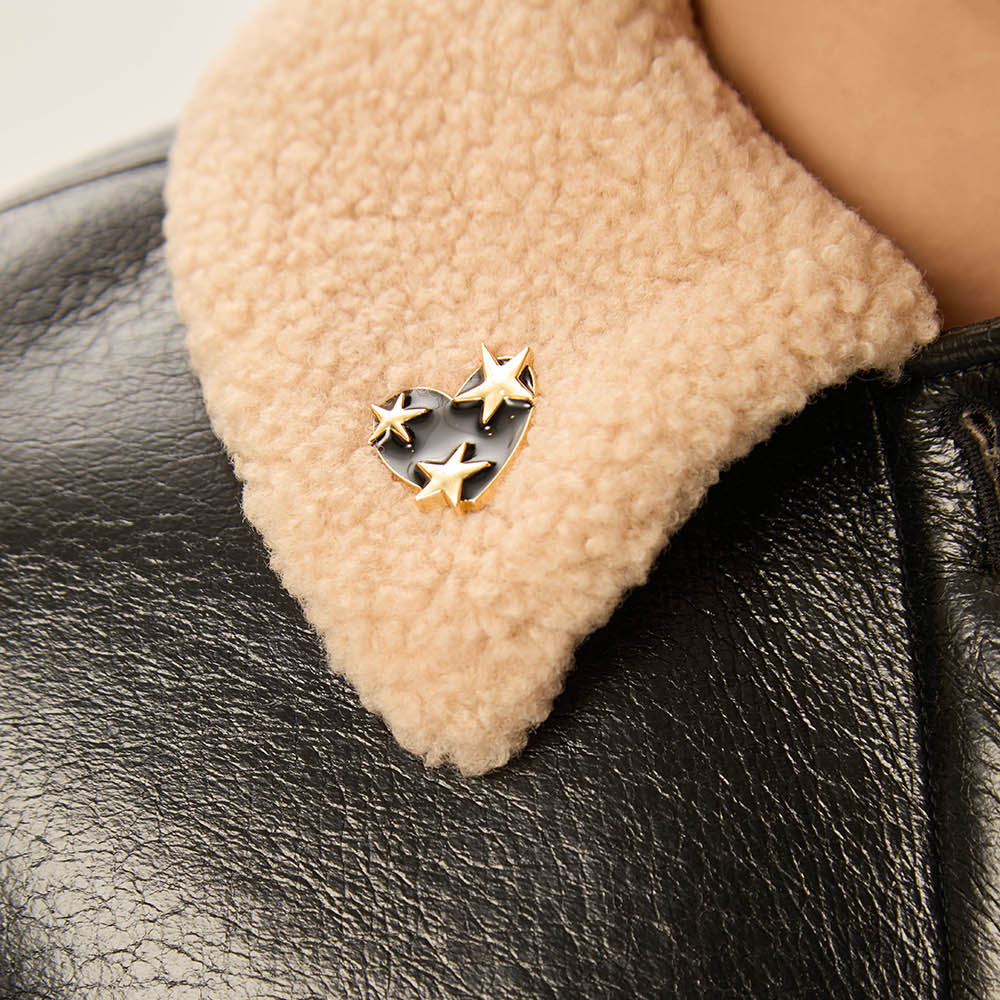 Con su moderno estilo western, corazón esmaltado y estrellas doradas en relieve, el broche Newton aportará carácter y originalidad a tus looks de temporada. Esmaltado a mano. Sujeción del pin en la parte posterior.