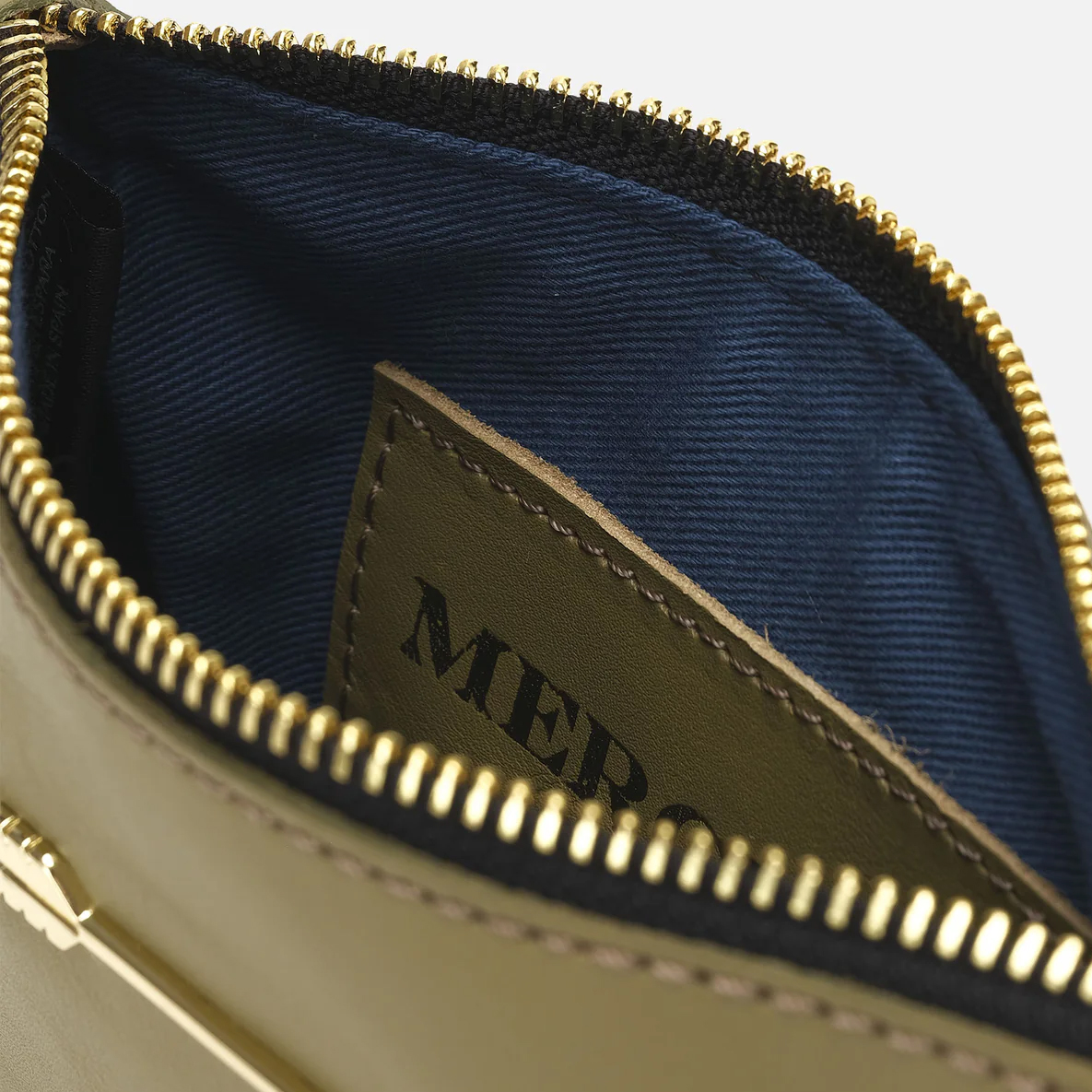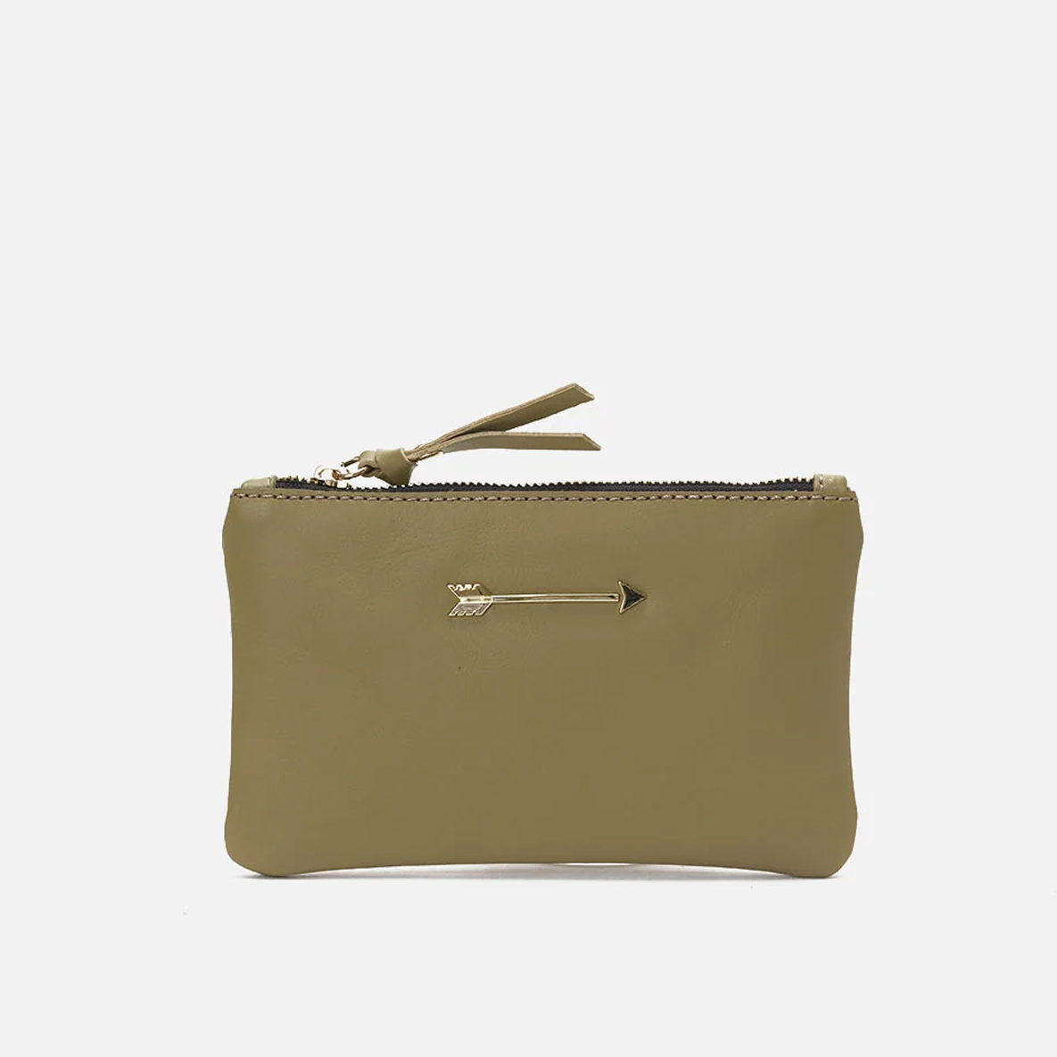 Cartera de piel plana con cierre de cremallera, flecha dorada en el frente y forro interior de algodón. El Wallet es la cartera perfecta para llevar en cualquier bolso, no ocupa nada y tiene mucha capacidad.