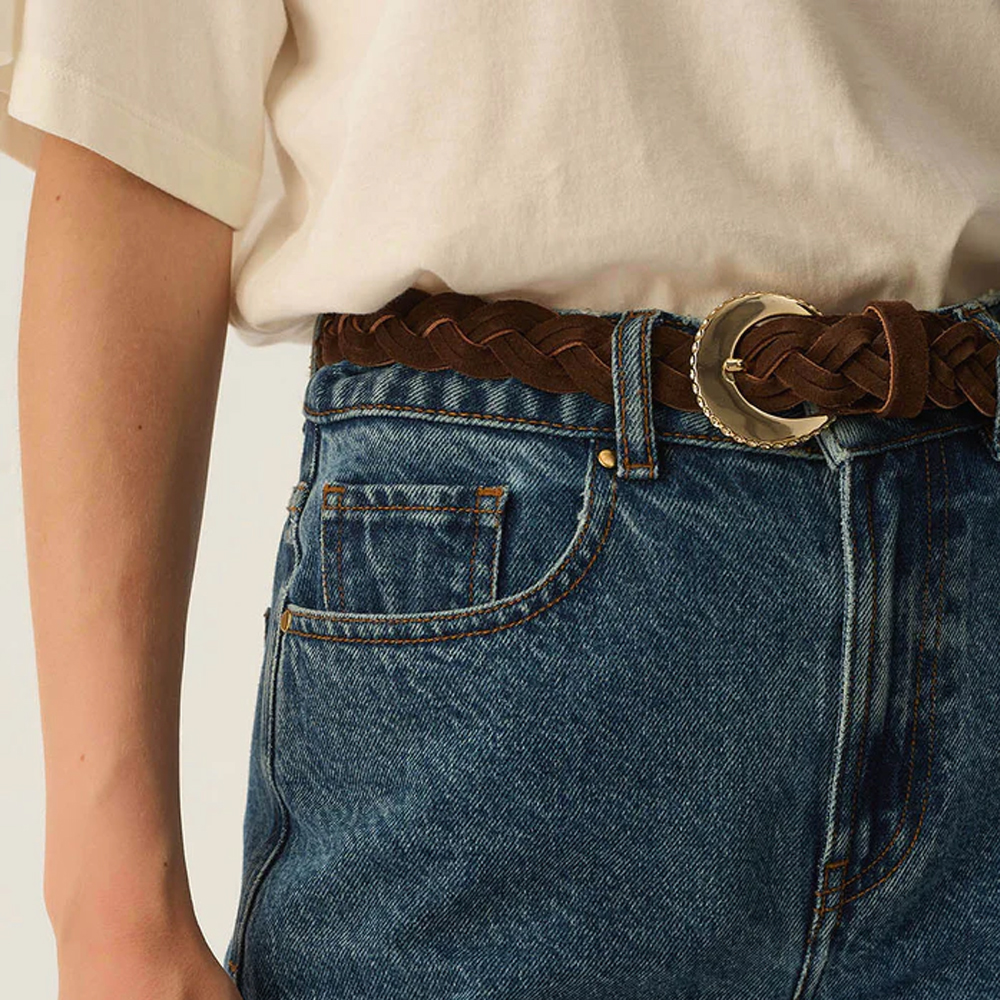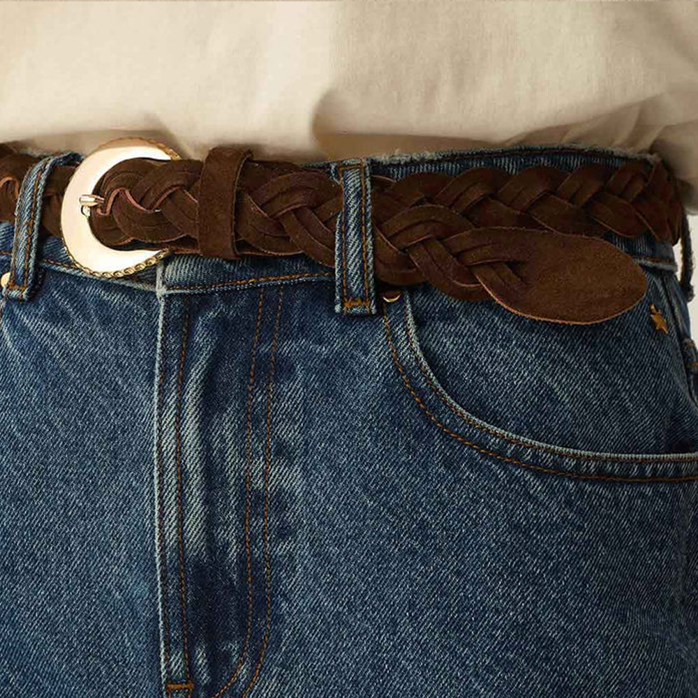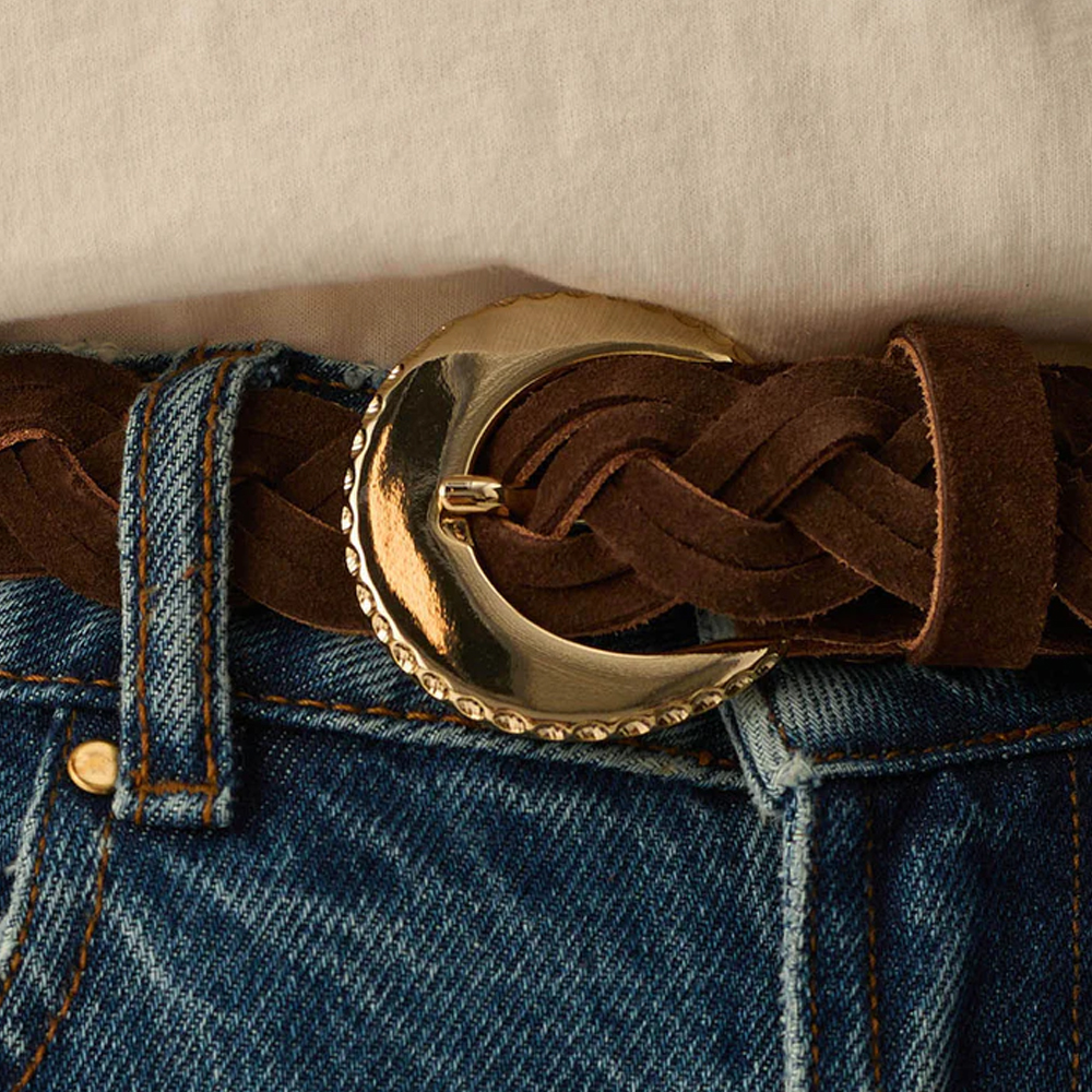 Complementado con una elegante hebilla dorada y trenzado a mano, el Nefle es un cinturón chic y folclórico que quedará perfecto con vaqueros, un bonito jersey o un vestido. Cinturón de serraje trenzado de 3 vueltas, en color chocolate, un marrón atemporal.