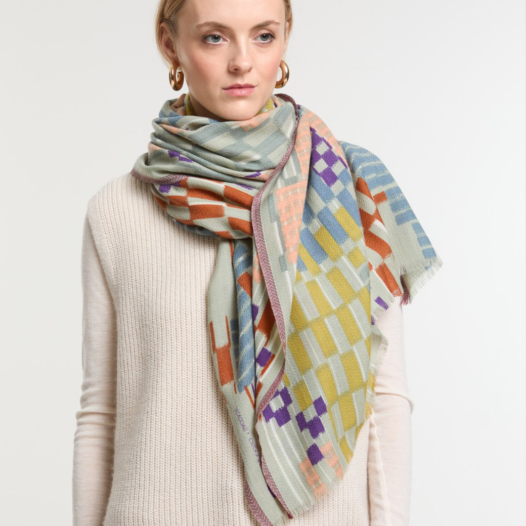 Estampada en lana, el foulard Saccade destaca por su suave y fluido tejido de chevron, perfecto para realzar los delicados colores de su diseño. El ritmo del estampado evoluciona sutilmente a través de un juego de colores que crea un efecto visual dinámico, donde los tonos se mezclan armoniosamente. Ofrece una paleta de colores combinados, ideal para adaptar y complementar tus looks, a la vez que añade un toque de modernidad y elegancia.
