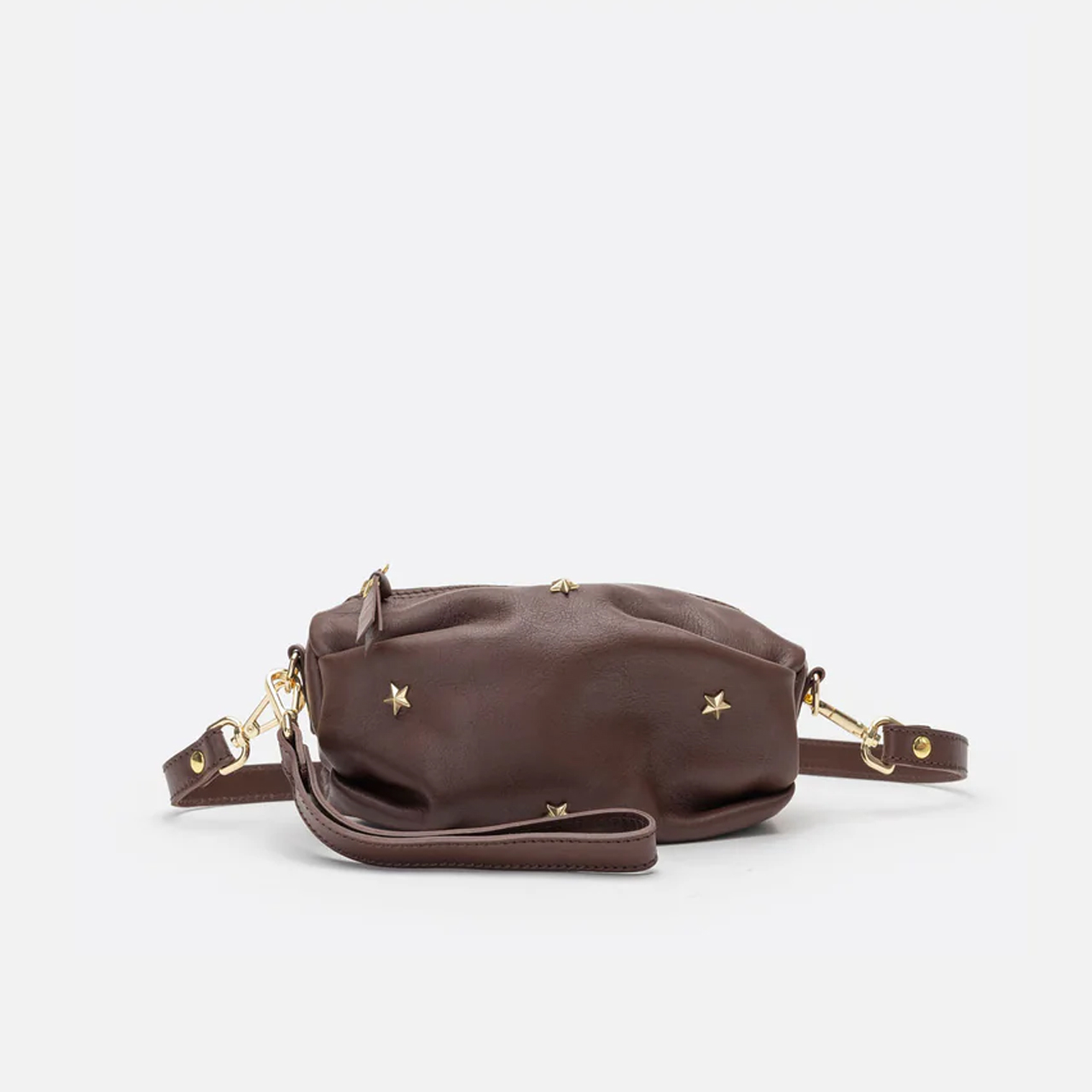 El Wasp es un bolso pequeño de piel con estrellas doradas, perfecto para darle un toque de glamour al look. Incluye un asa corta para poder llevarlo en la mano y un asa larga para poder colgarlo o cruzarlo. El bolso ideal para llevarlo día y noche.