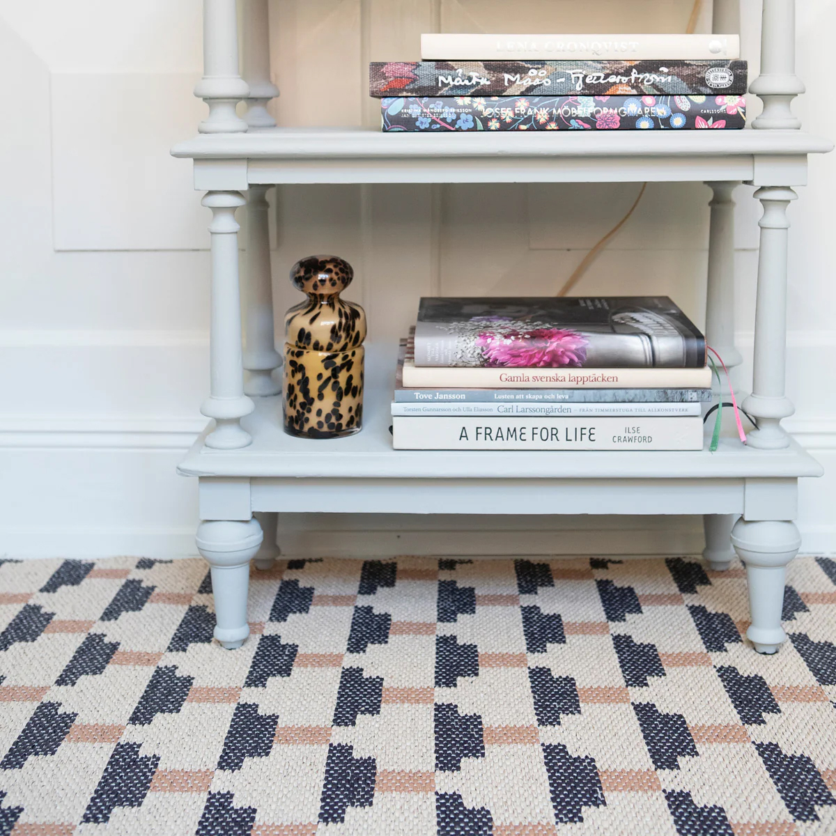 Alfombra apta para interior y exterior. De vinilo trenzado, libre de ftalatos y metales pesados. Esta alfombra es muy resistente, y se adapta perfectamente a la cocina, el baño, la habitación de los niños, el pasillo o la terraza. Además, es hipoalergénica, suave y fácil de limpiar.