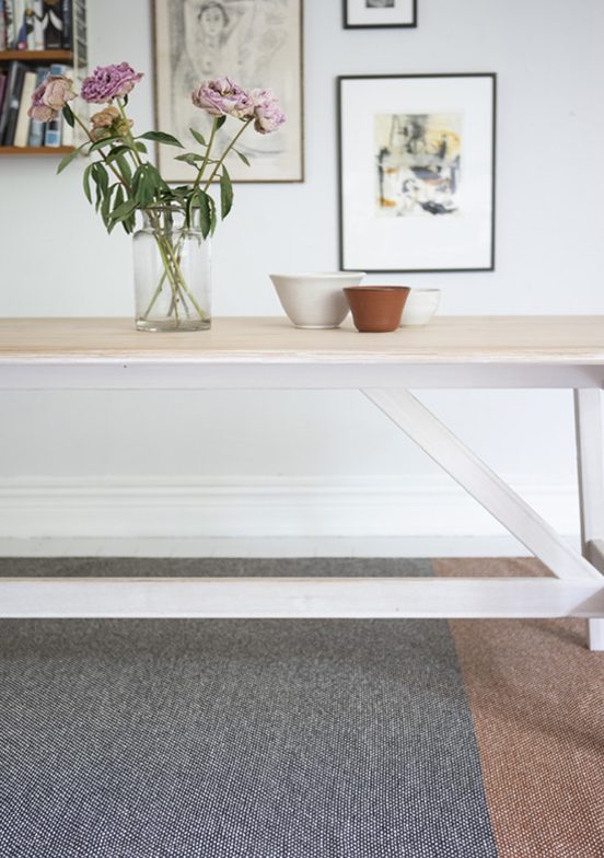Alfombra apta para interior y exterior. De vinilo trenzado, libre de ftalatos y metales pesados. Esta alfombra es muy resistente, y se adapta perfectamente a la cocina, el baño, la habitación de los niños, el pasillo o la terraza. Además, es hipoalergénica, suave y fácil de limpiar.