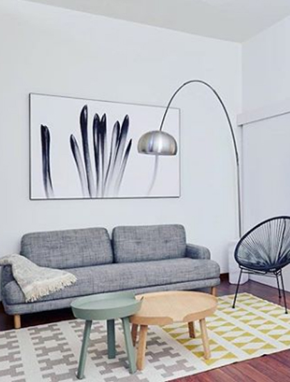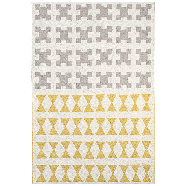 Alfombra Paris yellow/warm grey de vinilo trenzado.