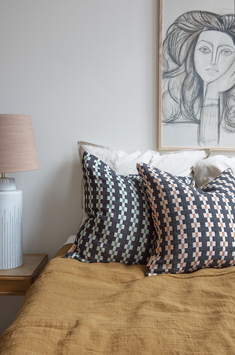 Cojín Marta Brown con funda de almohada tejida en 100 % algodón reciclado.