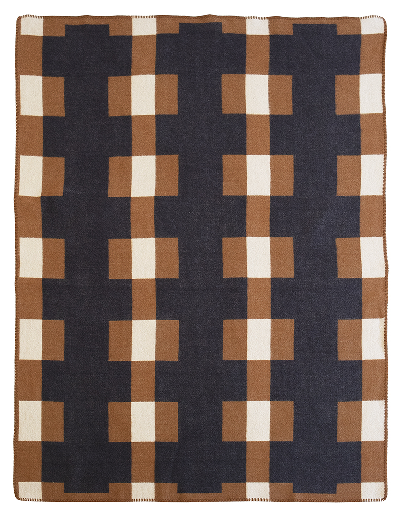 Manta Marta Brown de lana de alta calidad hecha con lana de cordero de Nueva Zelanda. Está hecha con suave lana de cordero producida en Lituania. Presenta costuras decorativas.