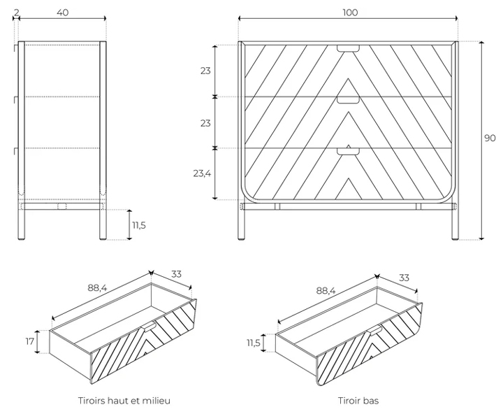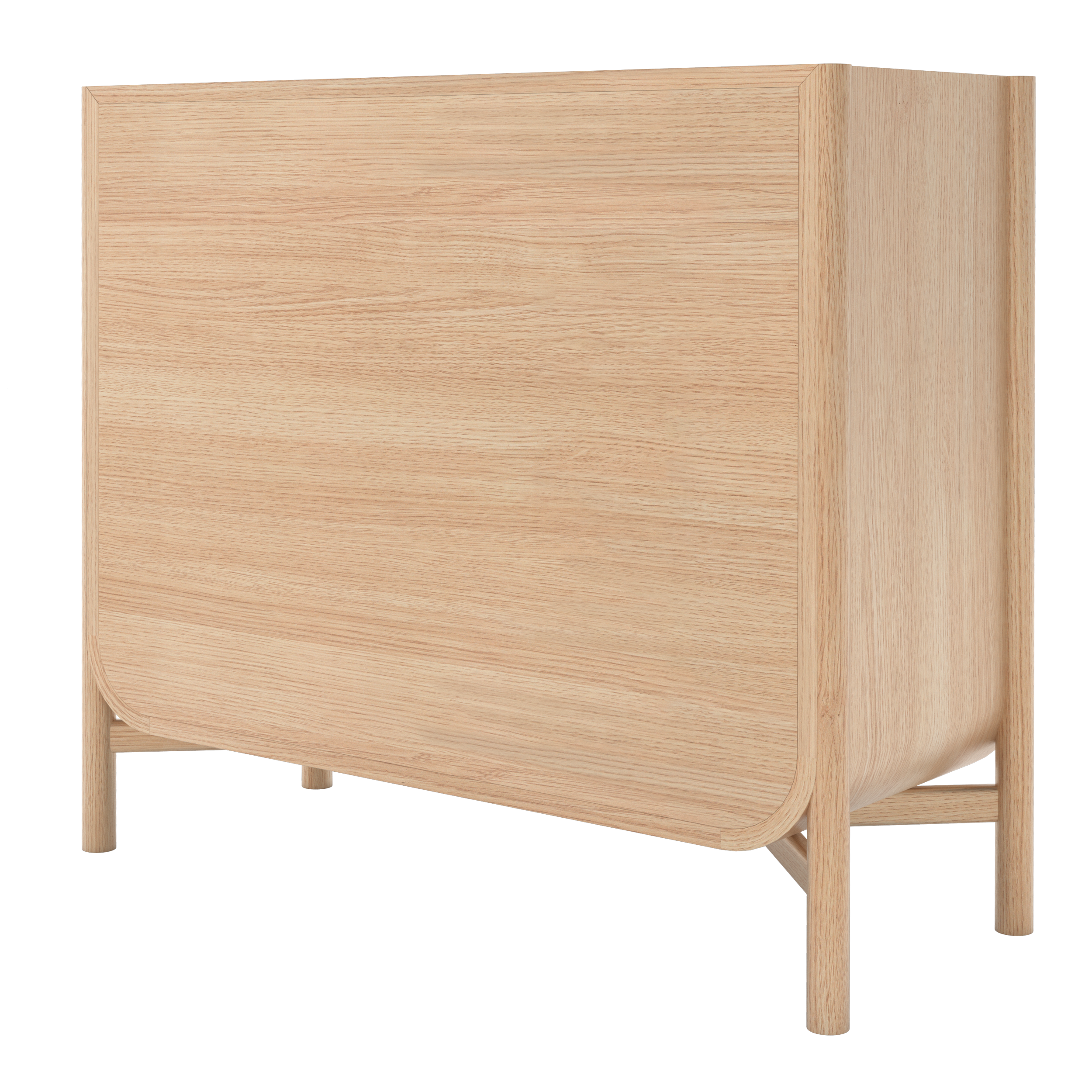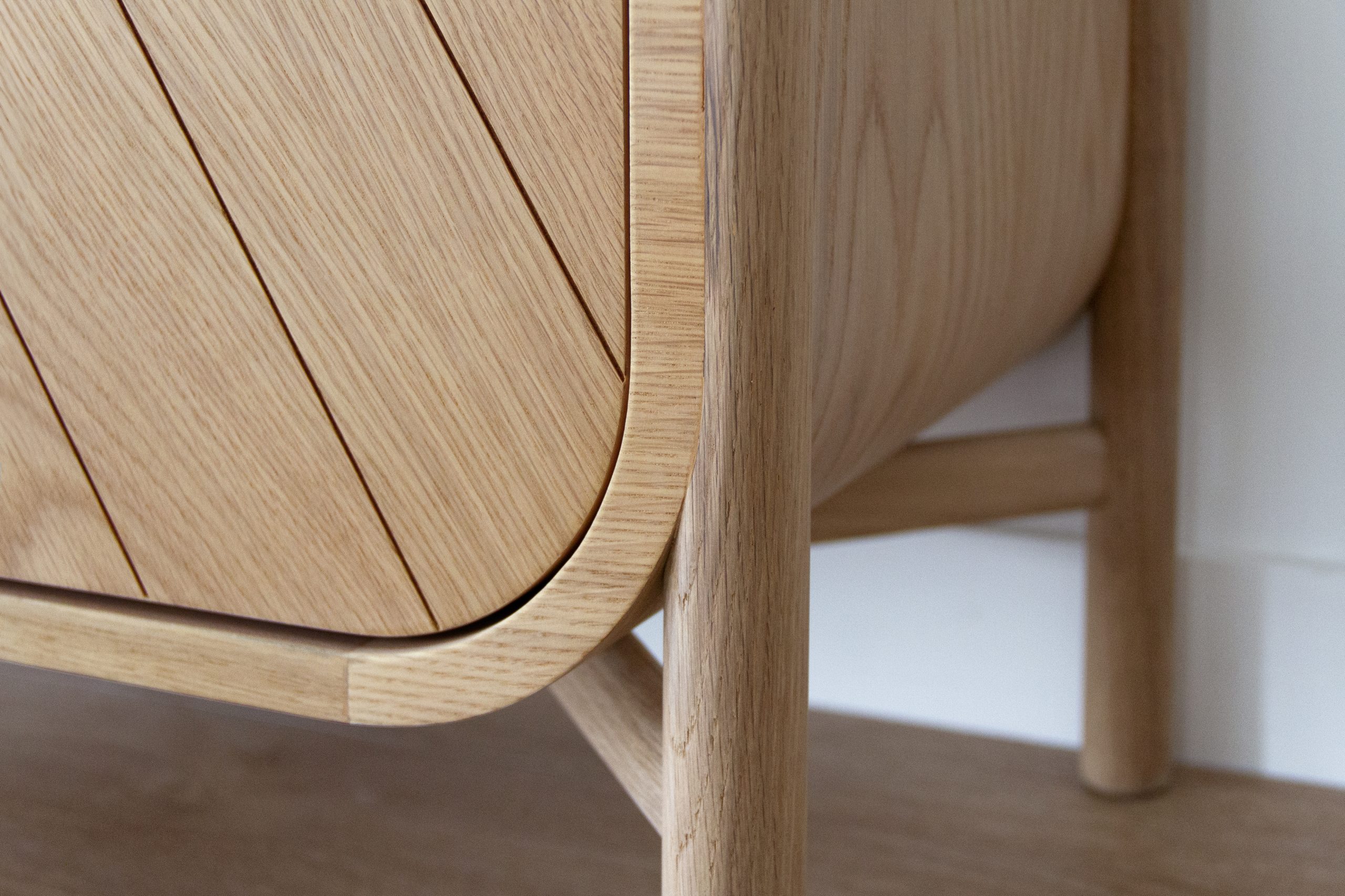 En un recibidor o dormitorio, ofrece un espacio de almacenamiento elegante con sus tres amplios cajones. La cómoda Marius está hecha de roble macizo y chapa de roble. Con su fondo curvo y líneas oblicuas, Marius evoca el mundo marítimo, los cascos de los barcos y sus velas. Un homenaje a la ebanistería tradicional y a los complejos ensamblajes.