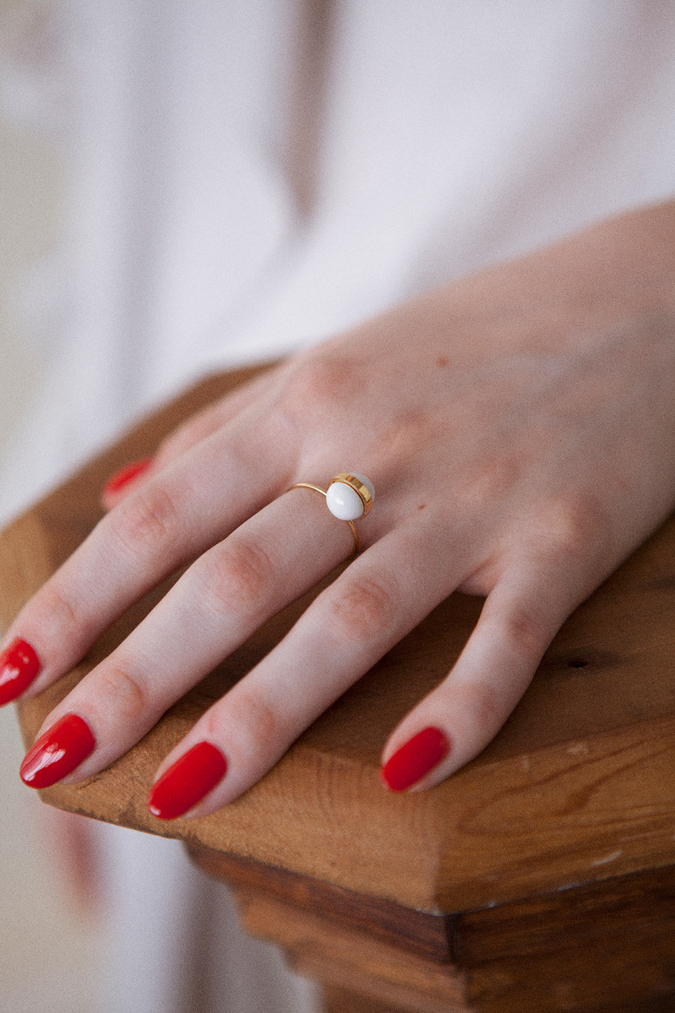 Anillo Mini Balloon 1 con pieza de porcelana artesanal. Latón bañado en oro de 18 quilates.