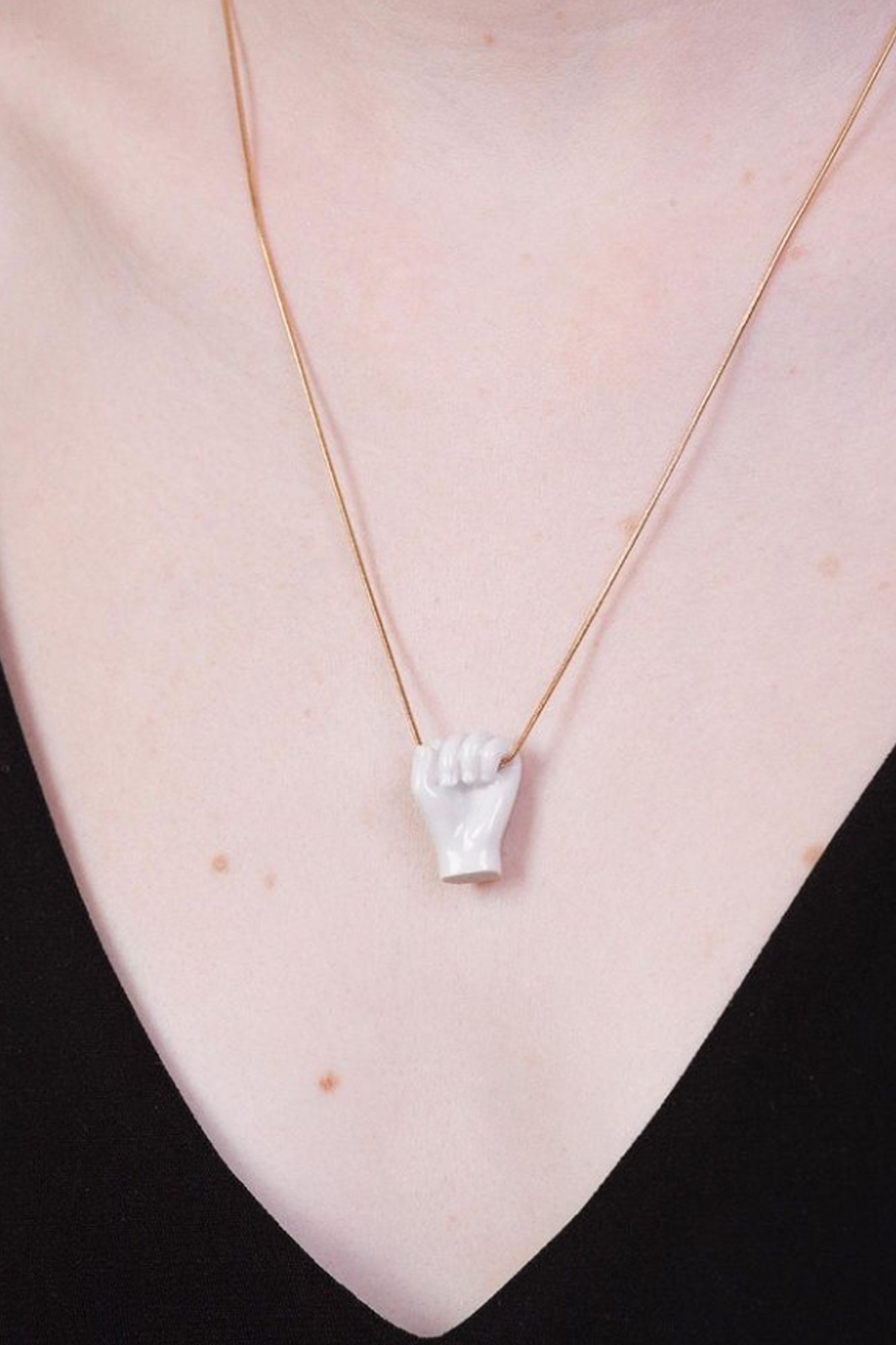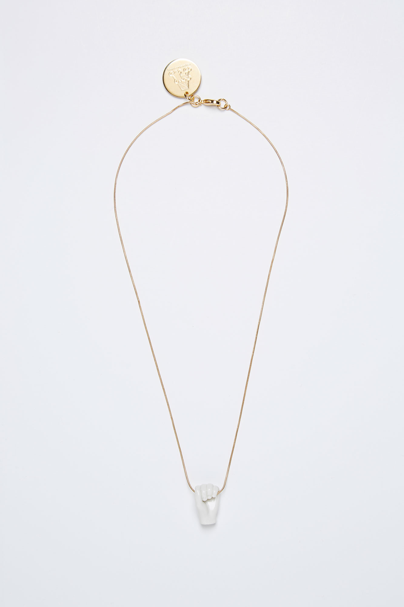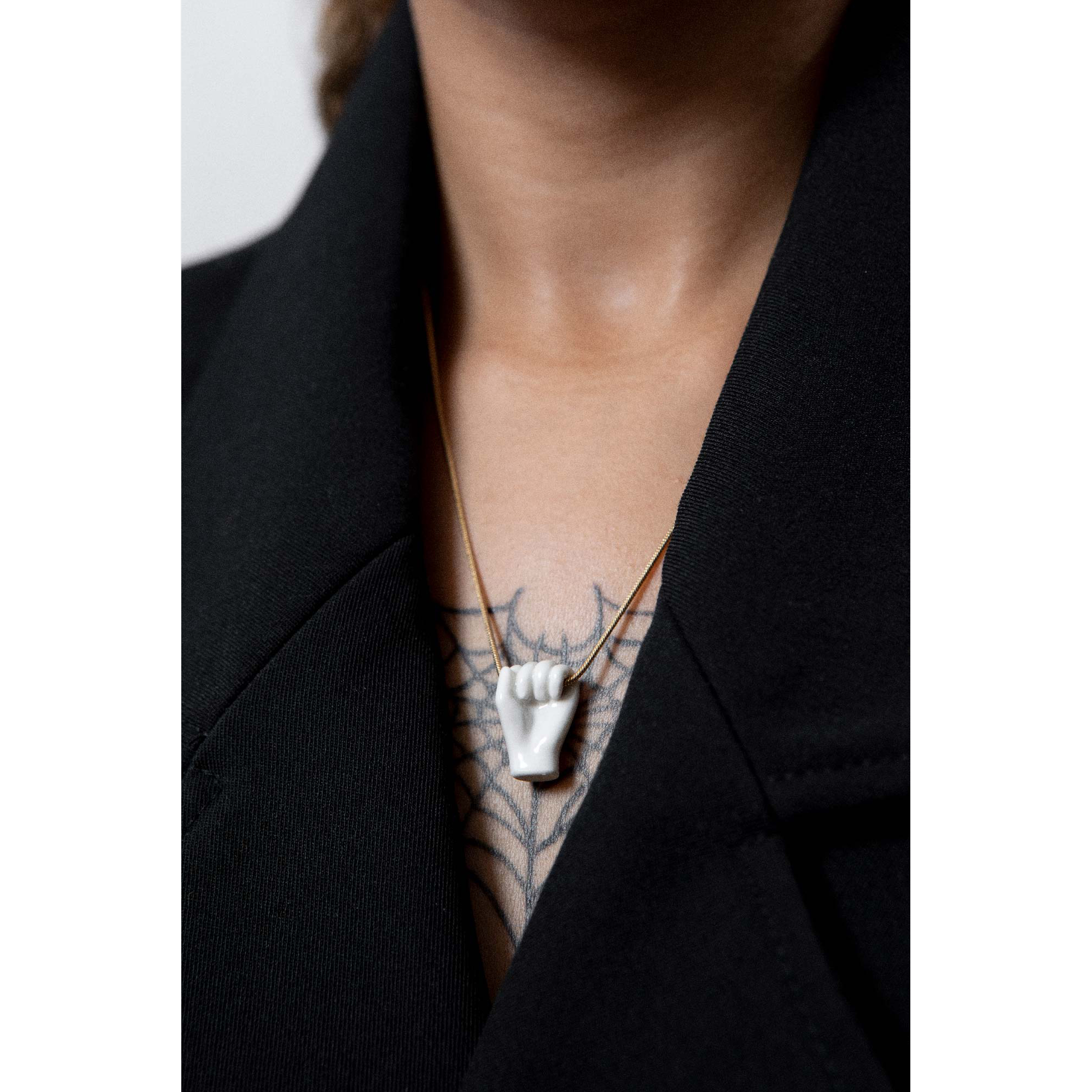 Collar Fist White con piezas de porcelana artesanal. Latón bañado en oro de 18 quilates.