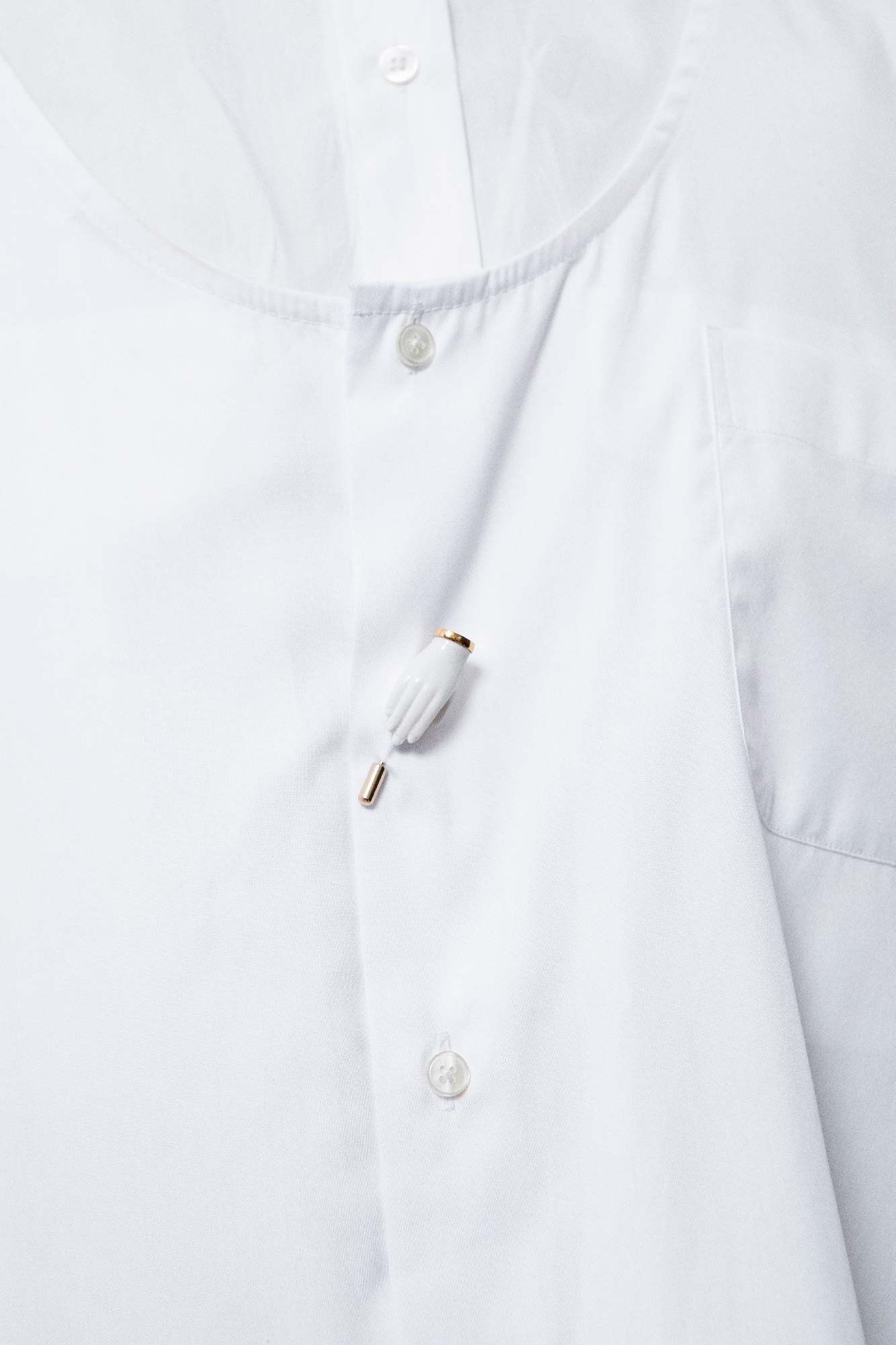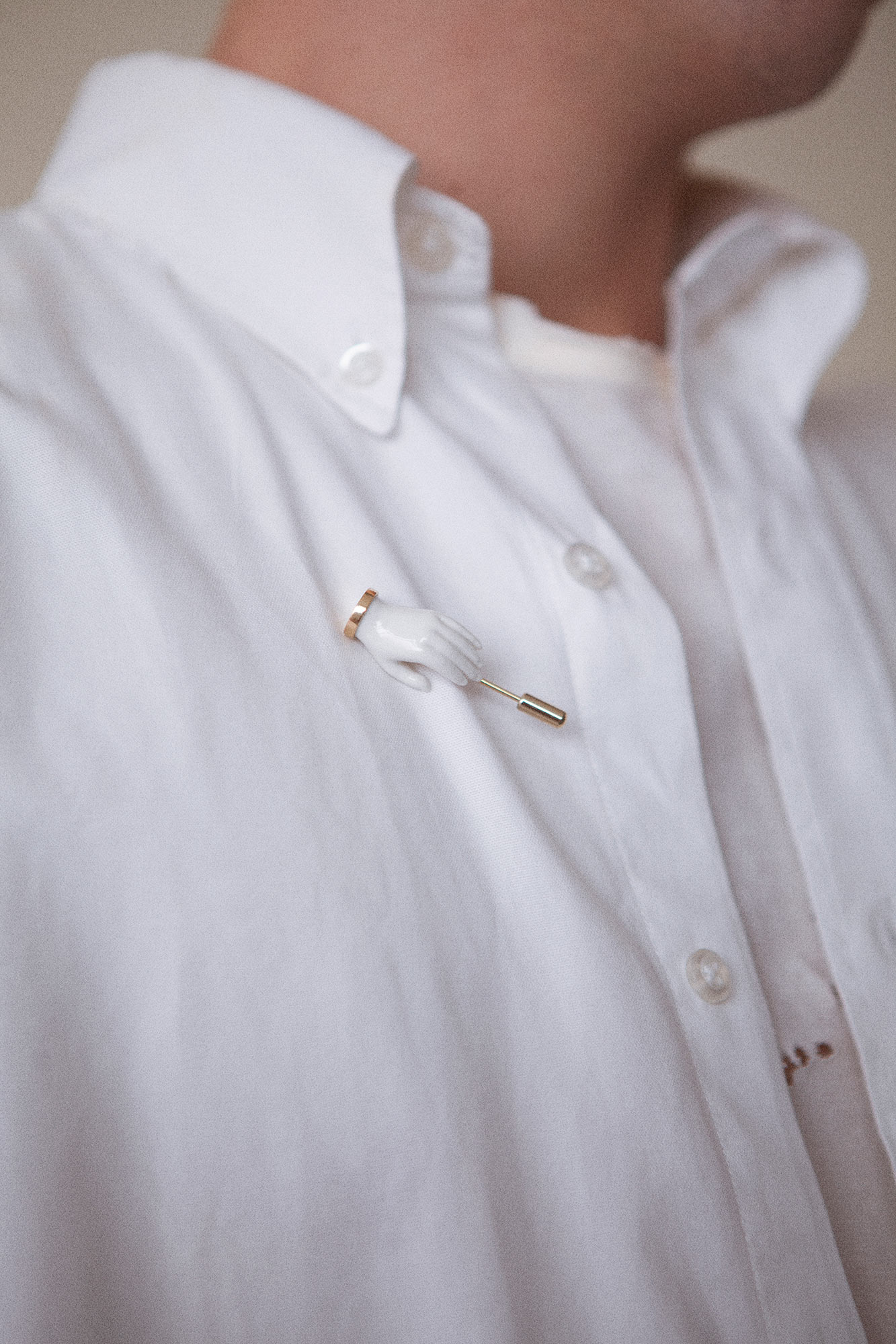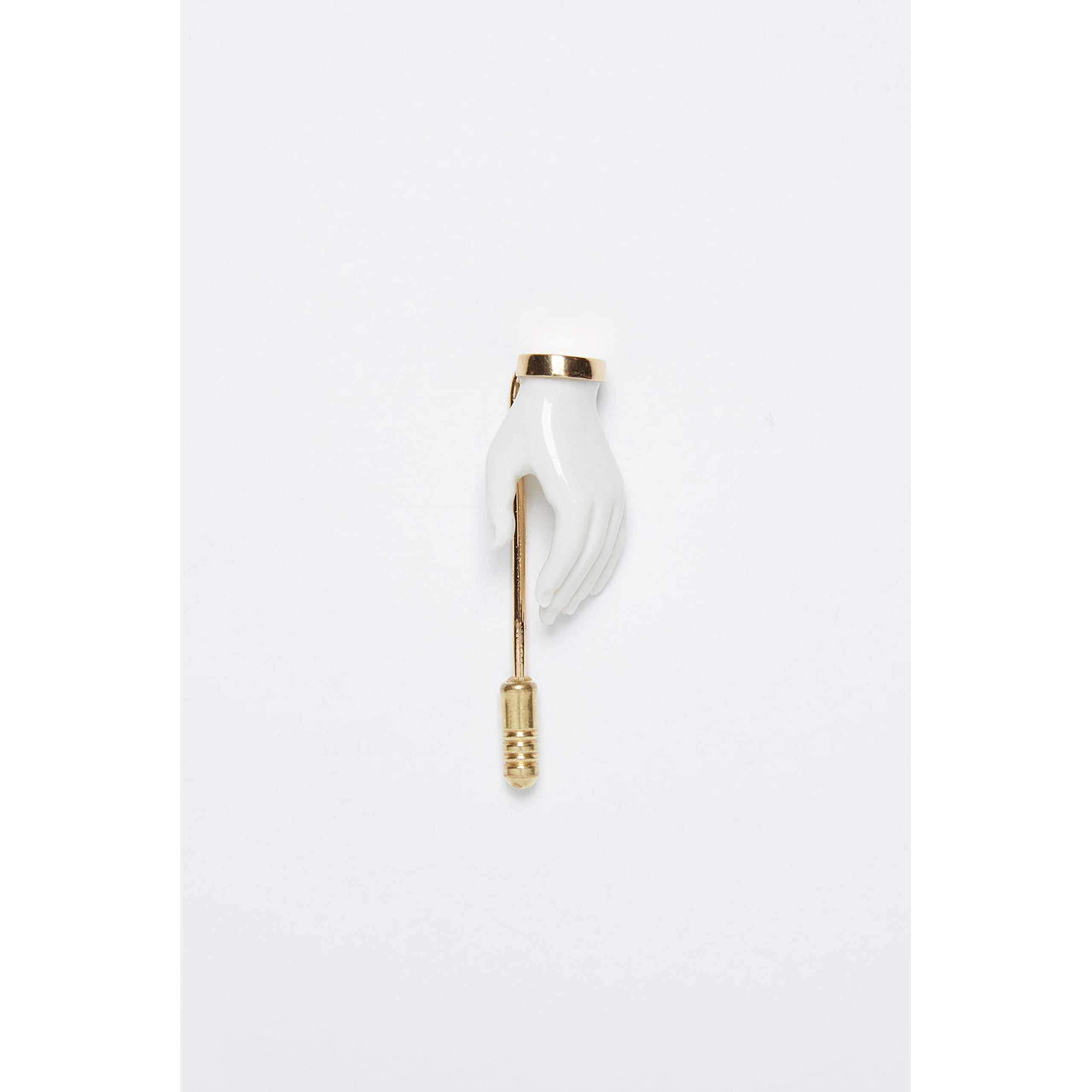 Broche Little Hand con pieza de porcelana artesanal. Latón bañado en oro de 18 quilates.