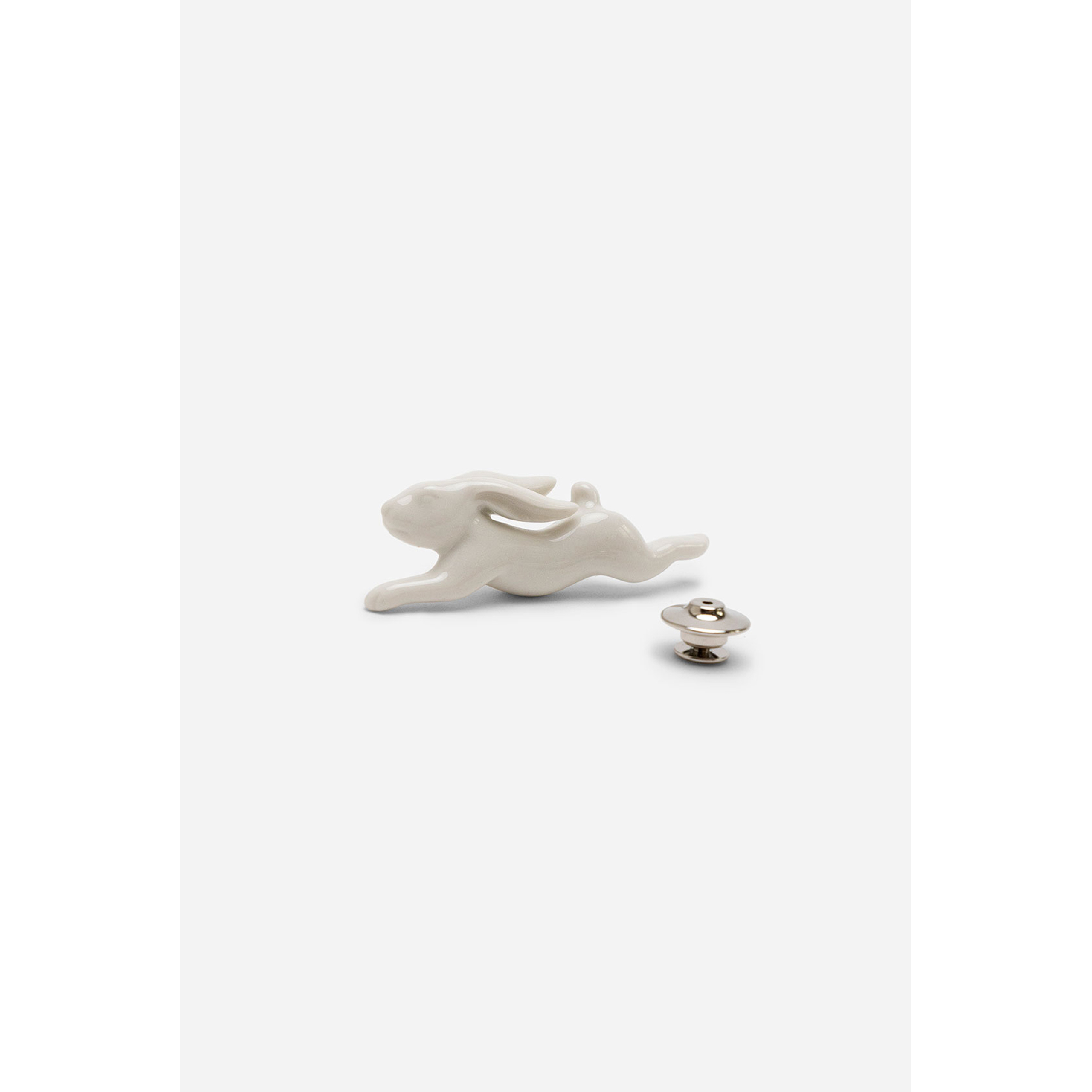 Broche Mini Rabbit con piezas de porcelana artesanal. Latón bañado en oro de 18 quilates.