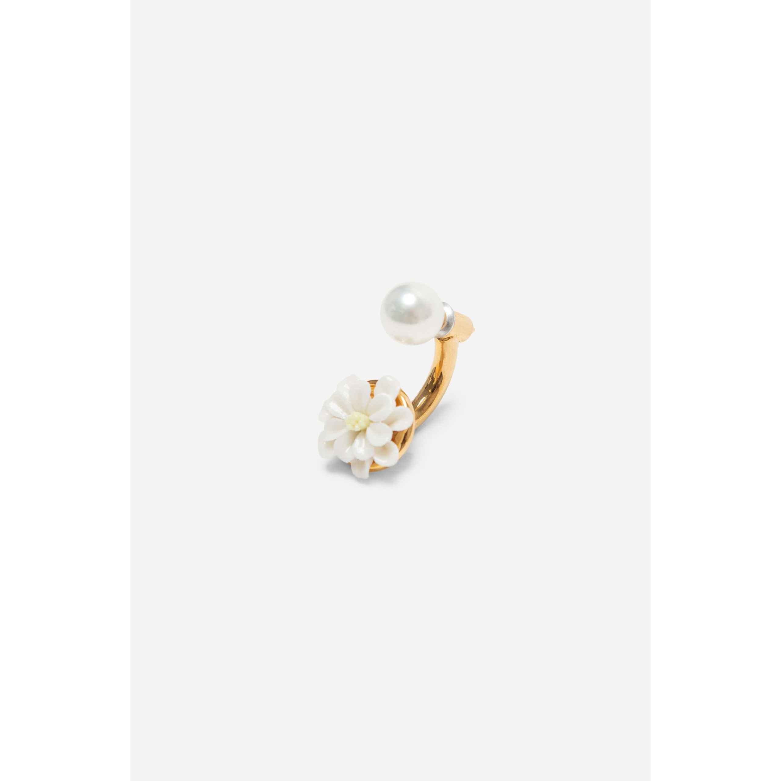Pendiente Daisy Pearl con piezas de porcelana artesanal. Latón bañado en oro de 18 quilates.