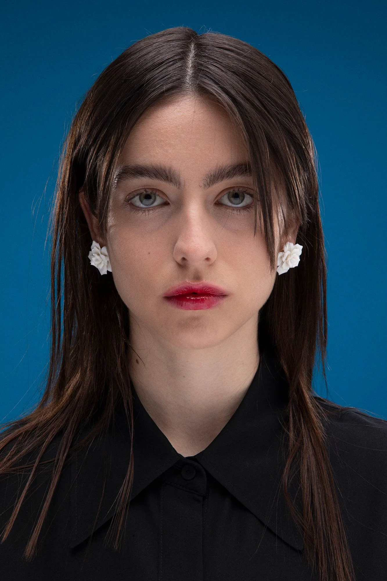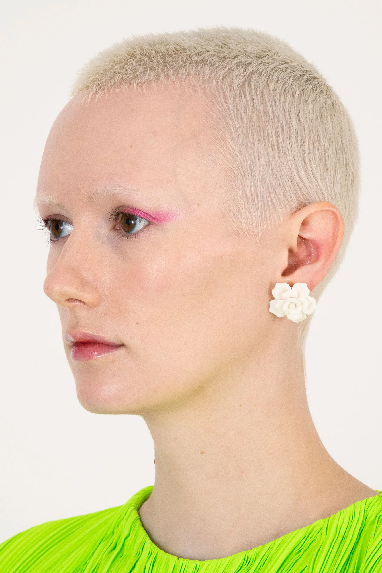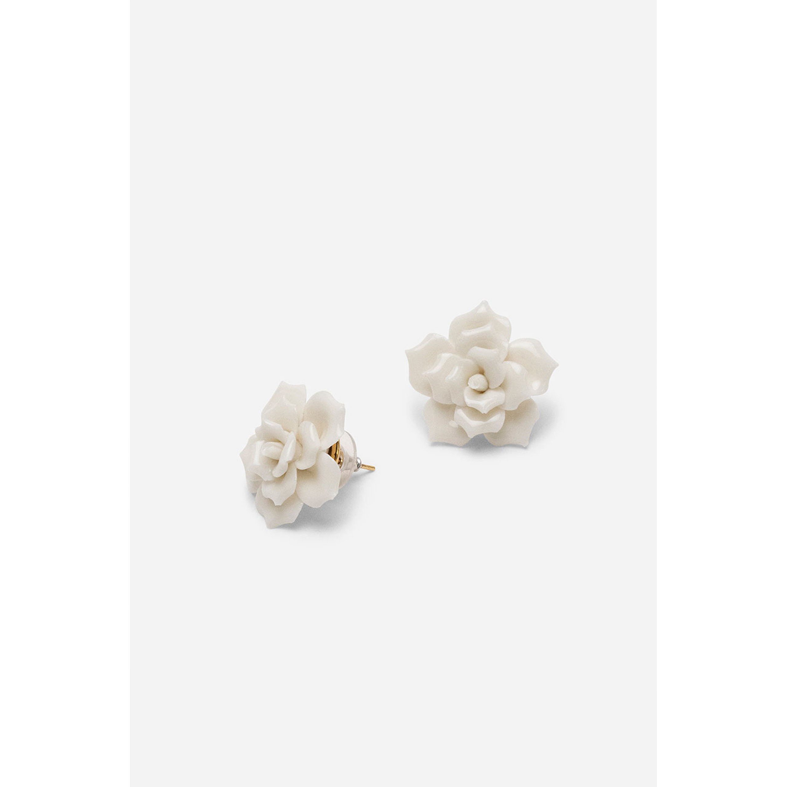 Pendientes Rose White con piezas de porcelana artesanal. Latón bañado en oro de 18 quilates.