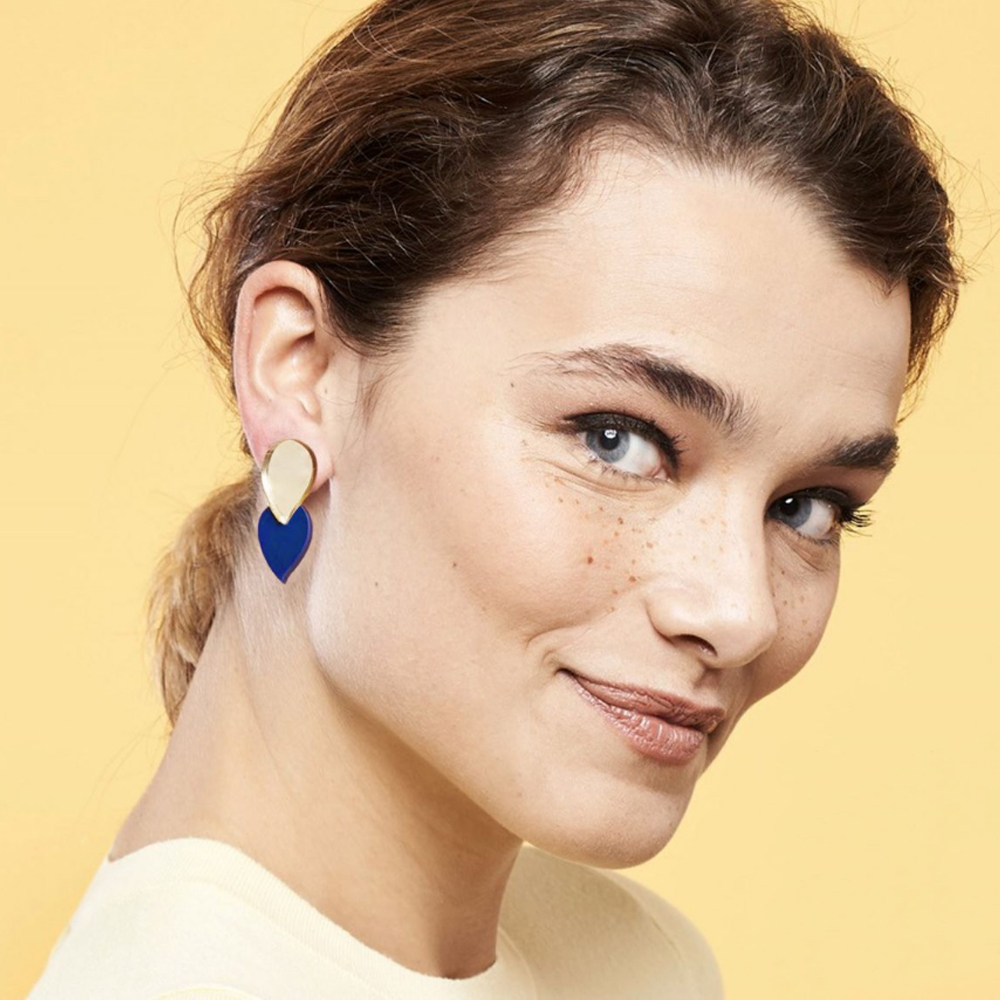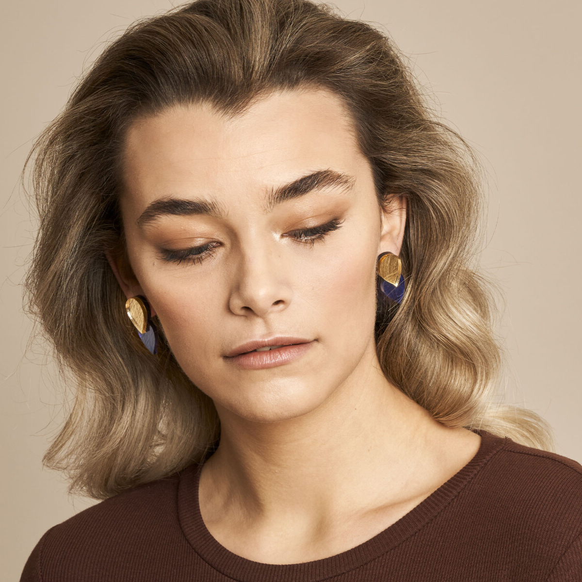 Pendientes El Ocaso Azul de metacrilato y latón con baño hipoalergénico en oro de 18k.