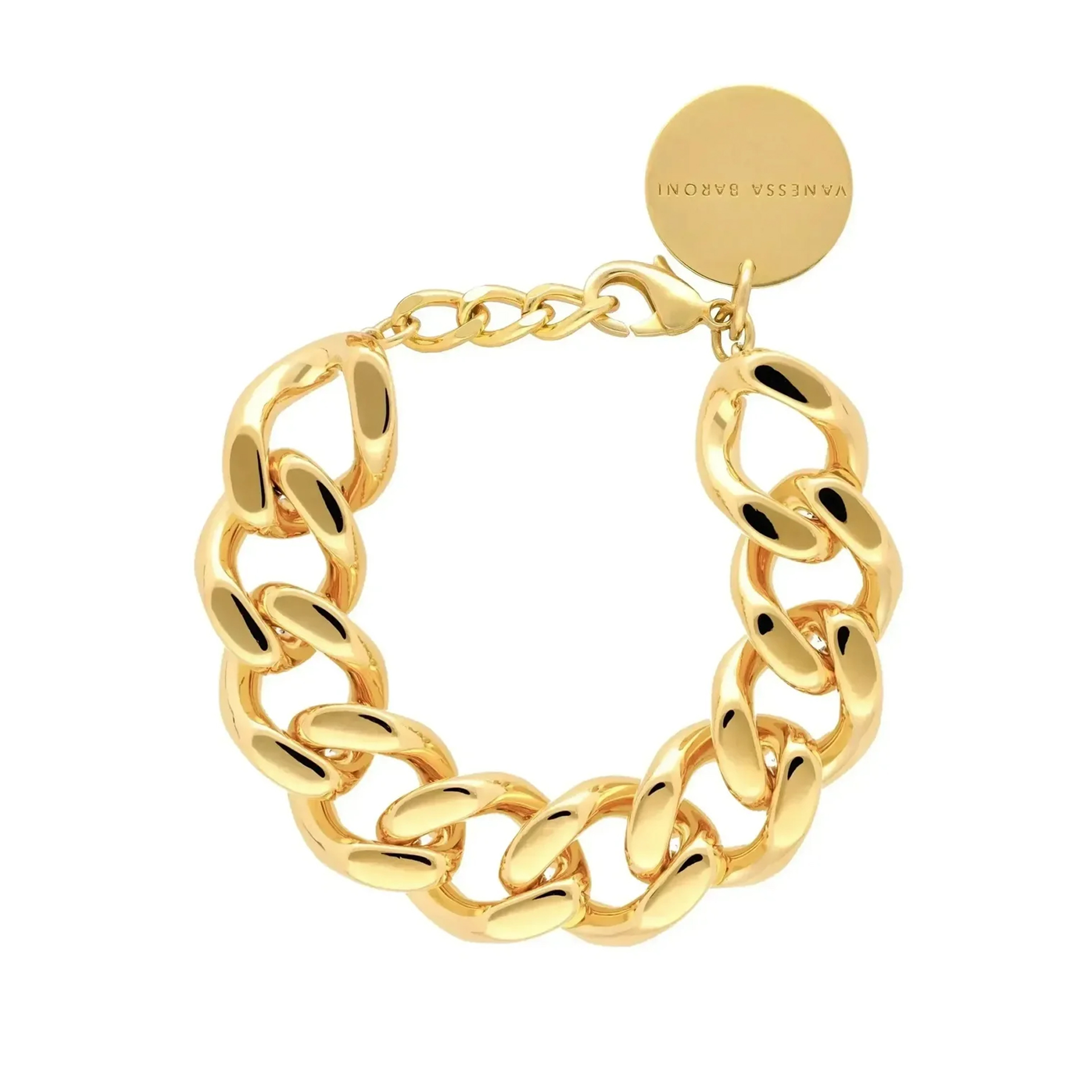 Pulsera Mini Flat Chain Biancone Marble de acetato biológico dorado.
