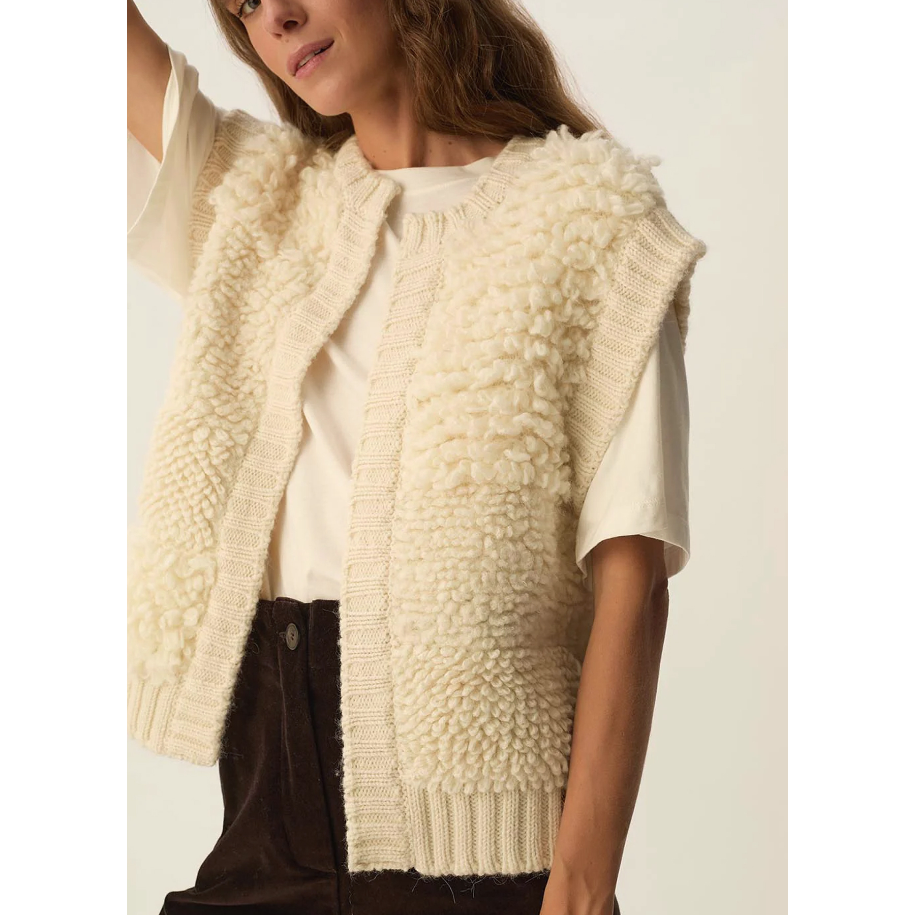 El chaleco Bongo rompe moldes y apuesta por un punto de pelo y bouclé con una textura irresistible. Una prenda acogedora y bohemia, totalmente a la moda, que combina con cualquier look. De hilo italiano de primera calidad.