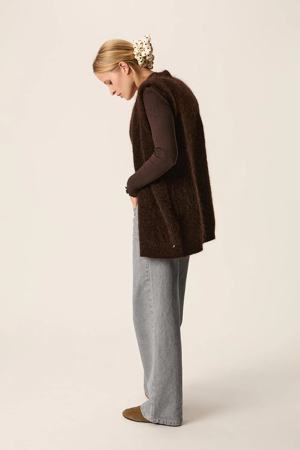 Chaleco Alvine Coffee de Kid mohair y lana merino.