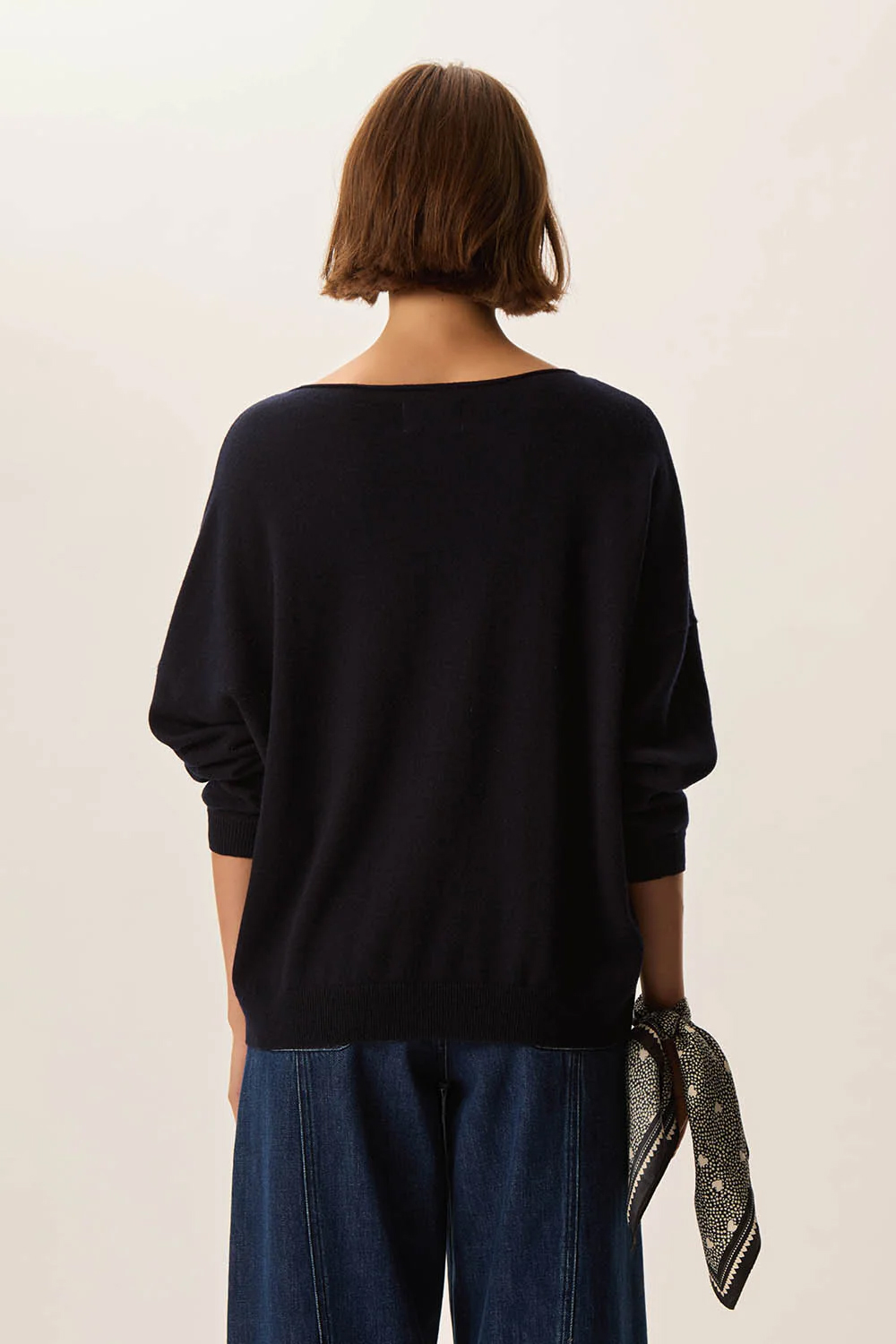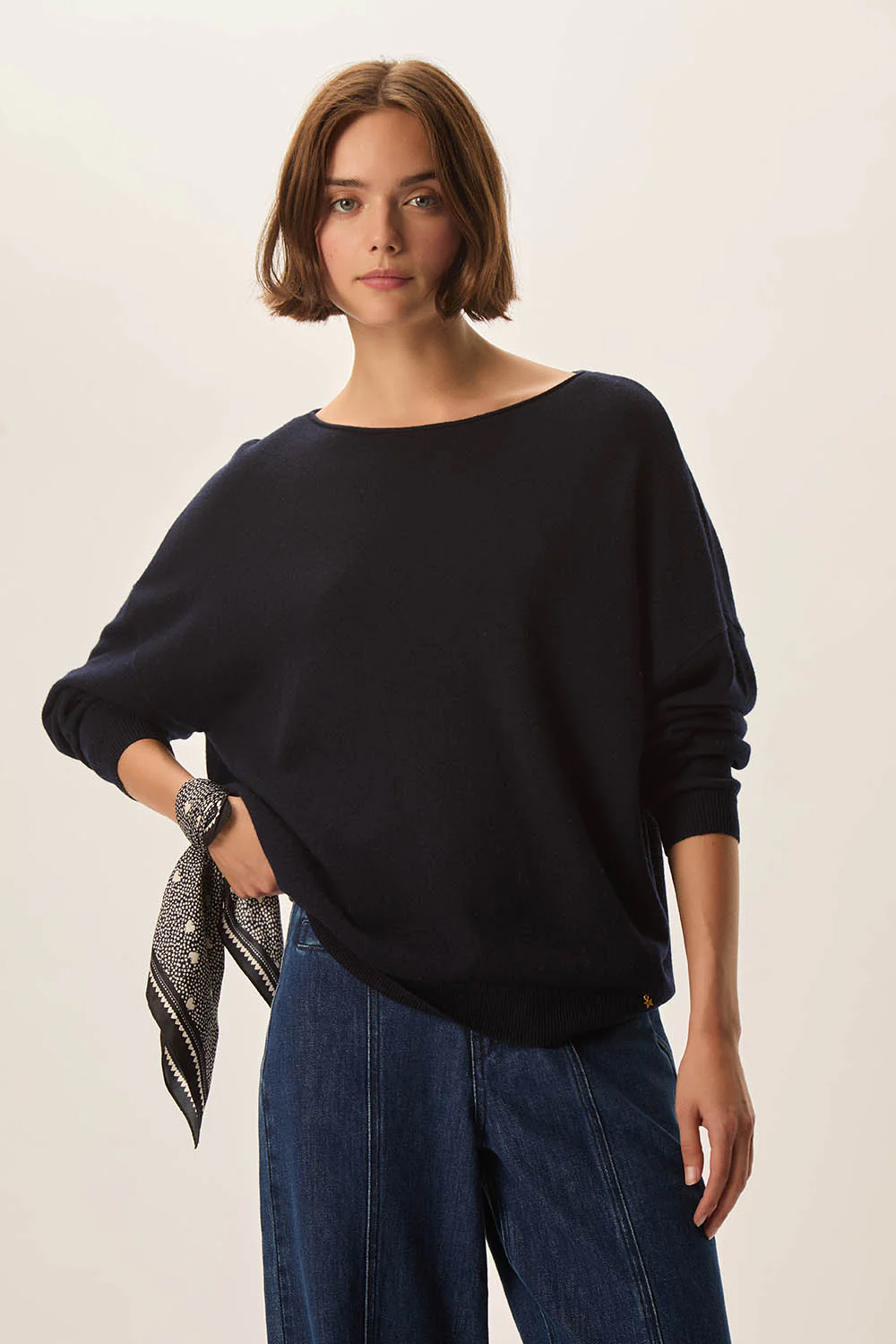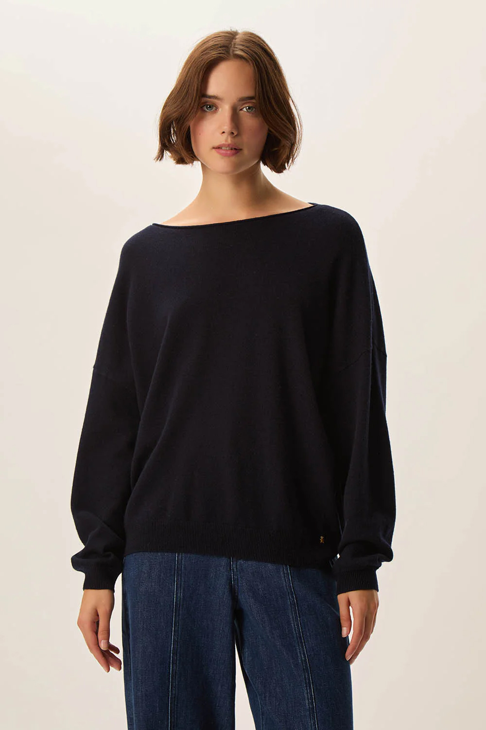 El suéter Aragone, ideal para llevar en contacto con la piel o sobre una camisola, es una tendencia minimalista. Con su corte holgado y fácil de combinar, es el jersey ideal.