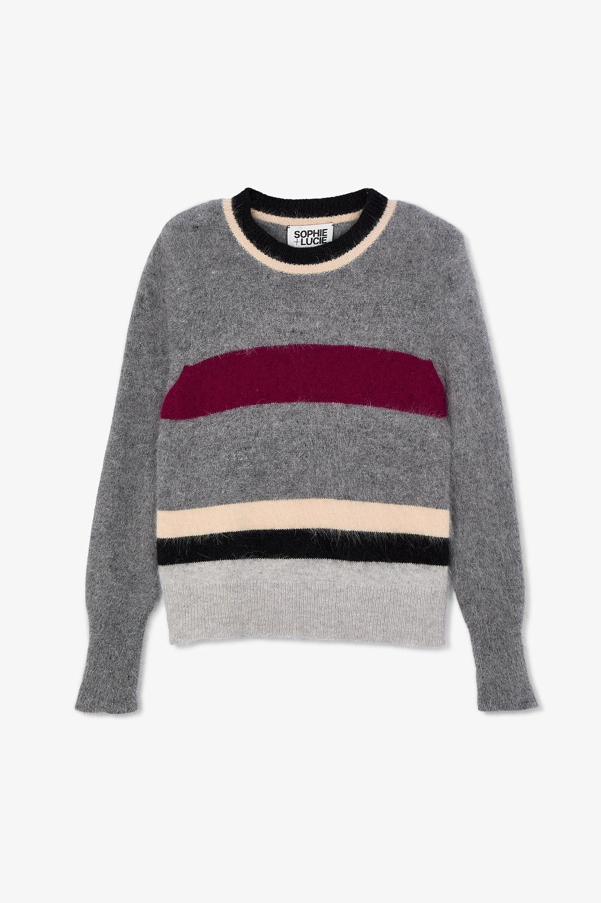 Jersey de punto de corte recto, cuello redondo y acabado en canalé en los puños y el bajo.